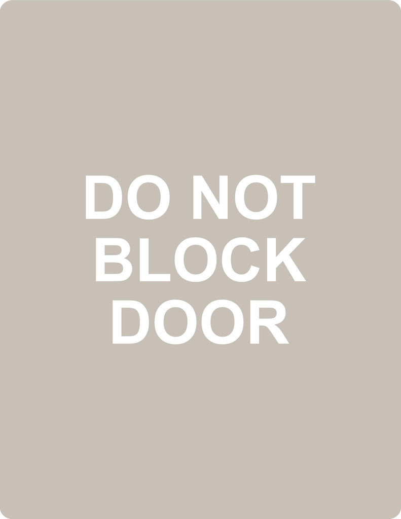 Do Not Block Door ADA sign with applique copy. No braille. Overall size 11" x 8.5". Single sided.