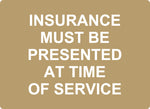 Insurance Must Be Presented ADA sign with applique copy. No braille. Overall size 8" x 11". Single sided.
